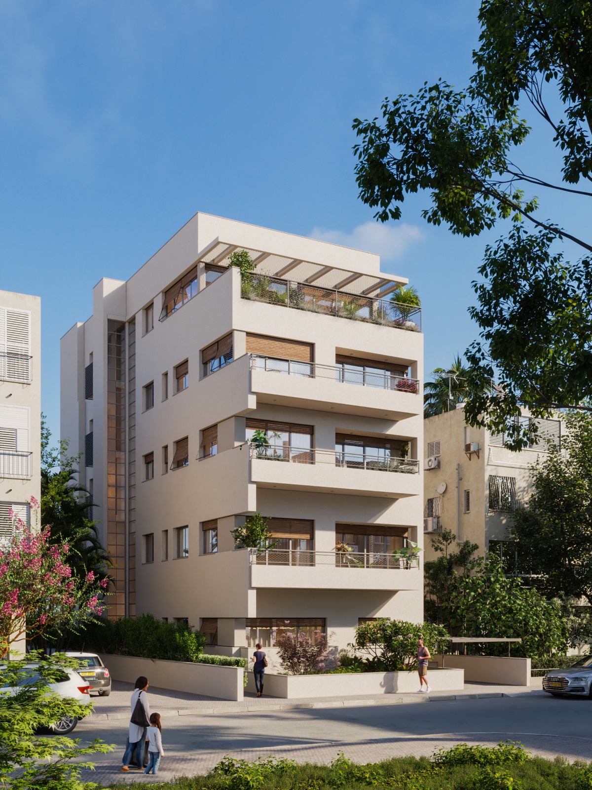 דירות חדשות למכירה בתל אביב, 3 חדרים במתחם בזל, בפריסייל תמ"א1, ברחוב שקט ופסטורלי. 3 71